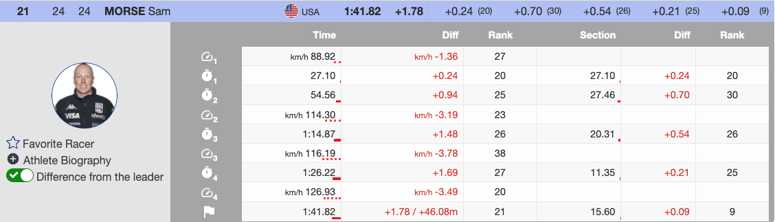 While Crawford, Bennett, Brodie Seger, and Cochran-Siegle finished among the top 15, another North American seized their opportunity on the demanding course. Stifel U.S. Ski Team member Sam Morse showed resilience, earning his first World Cup points of the season with a 21st-place finish, 1.78 seconds behind the leader.
