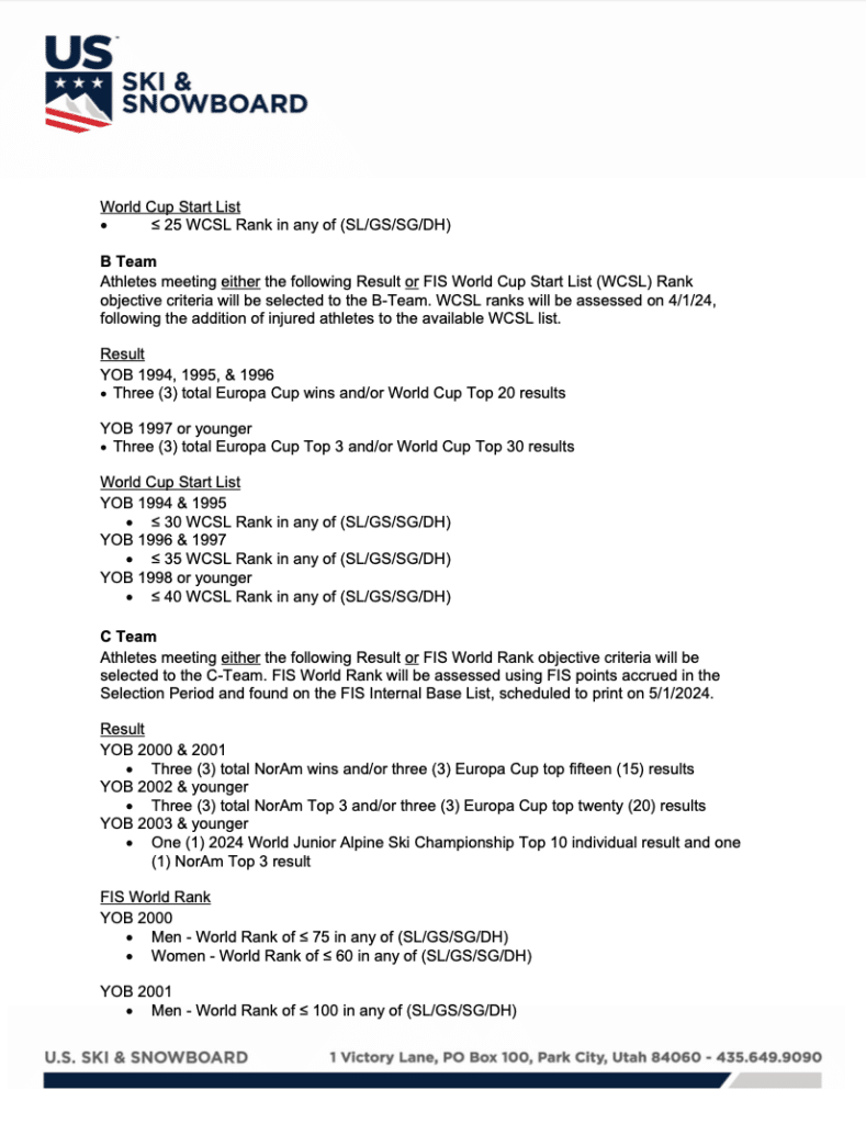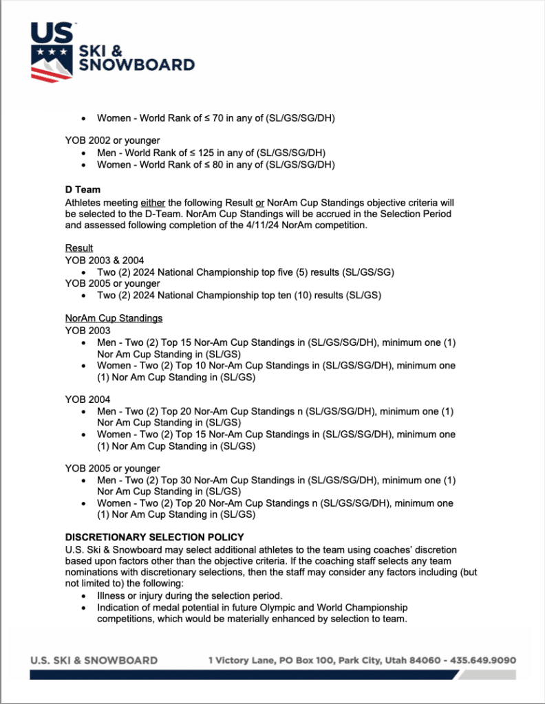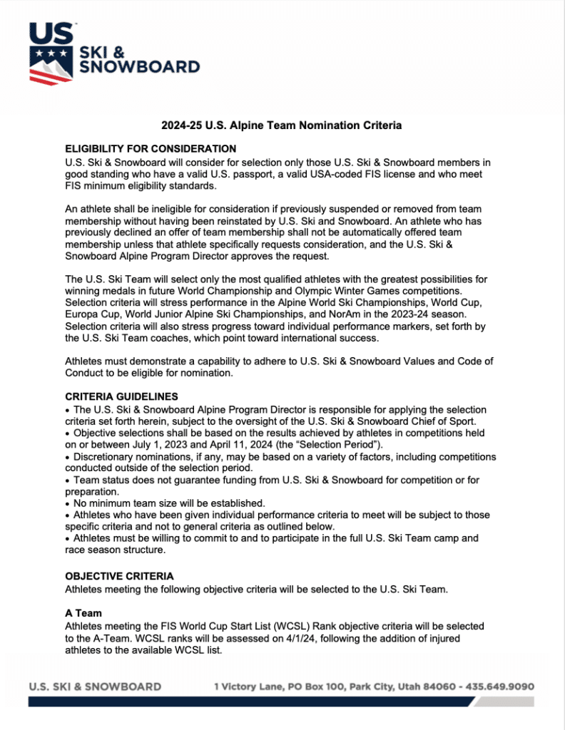 In a recent discussion about the Stifel US Alpine Team’s strategy for the upcoming 2024-25 season, Patty shed light on their approach to refining the nomination criteria. Reflecting on the past year’s efforts, Patty emphasized the team’s commitment to clarity and goal alignment. Last year, substantial structural changes were implemented to make the criteria transparent, reflective of team objectives, and inclusive of diverse pathways for aspiring athletes.