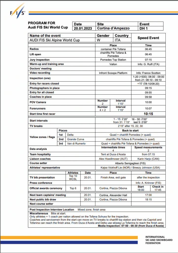 Cortina organizers promote the women’s downhill as 90 seconds of pure adrenaline, which is true. This season the women will have two chances at this amazing course. They traded one of their super-G races to St. Anton for downhill when the Austrian organizers could not offer a training day, eliminating the possibility of a downhill race. However, there is no better downhill course on the women’s calendar than Cortina’s Olimpia track, the “Queen of Speed,” nor is there a more scenic venue. Adding to the event buzz, after taking a quick break from competing, Mikaela Shiffrin is back in action. Additionally, Cortina will host the women’s alpine events for the 2026 Winter Olympics.