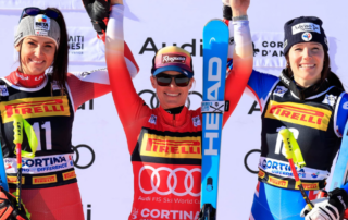 The Cortina super-G was an exciting day full of emotion. Italian, Federica Brignone achieves her first victory in Cortina. Lara Gut-Behrami earns 2nd and Corinne Suter 3rd. Lindsey Vonn goes out, but was in contention for a top result.