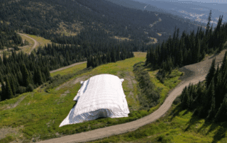 Sun Peaks Resort (BC) and Bogus Basin (ID) open snow farming storage facilities built by Snow Secure in collaboration with LISKI Sport Equipment, preserving summer snow and enabling an early-season opening.