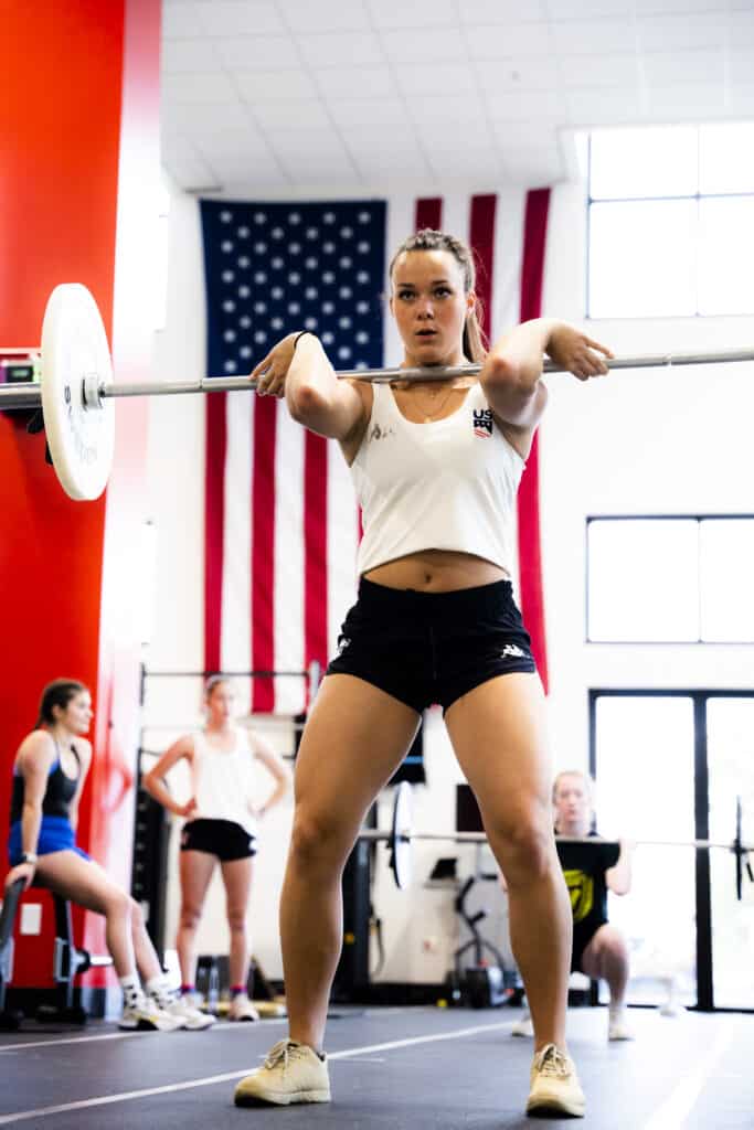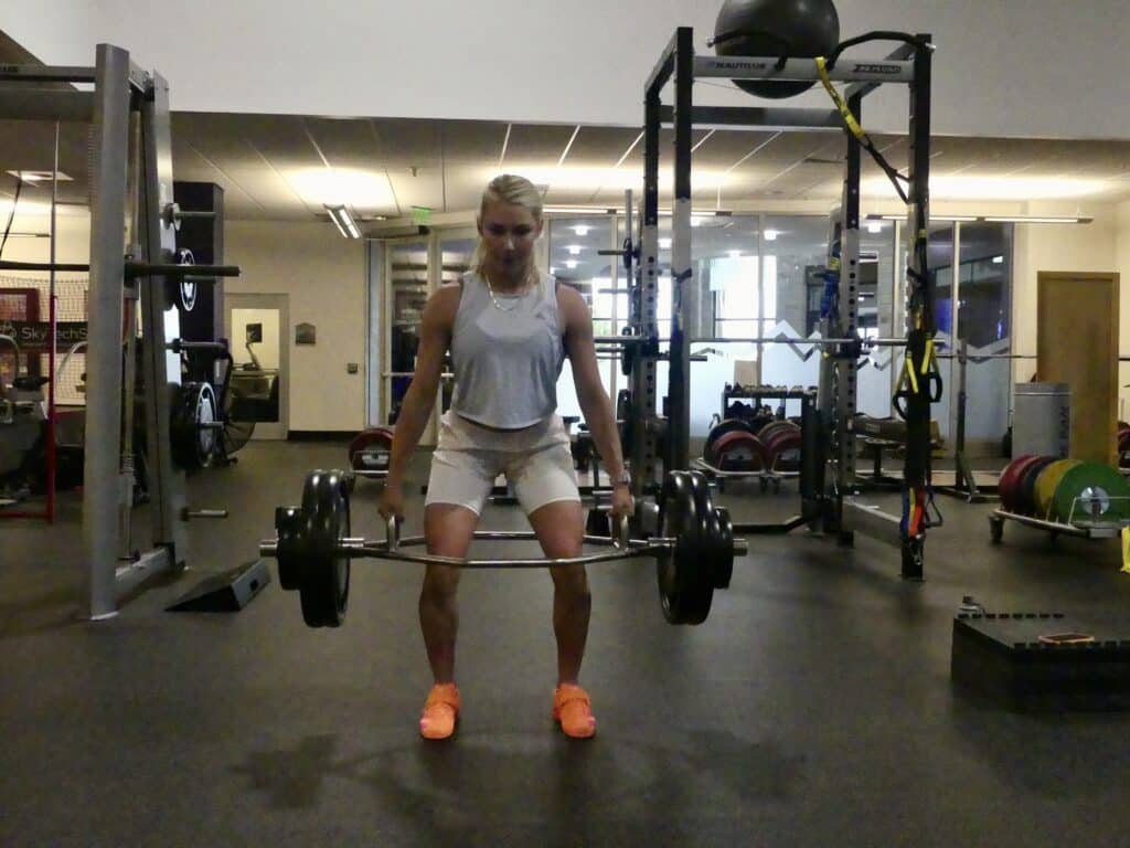 - Focus: Focus on whatever will help you fully execute the exercise. The focus could be technical (e.g., hips forward) or mental (e.g., explode).