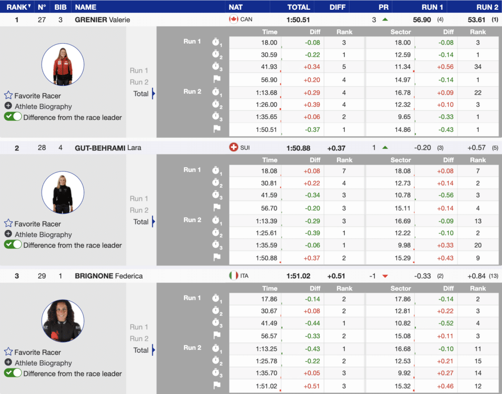 Kranjska Gora Women’s GS Results and Analysis of the Fastest Three and the North Americans