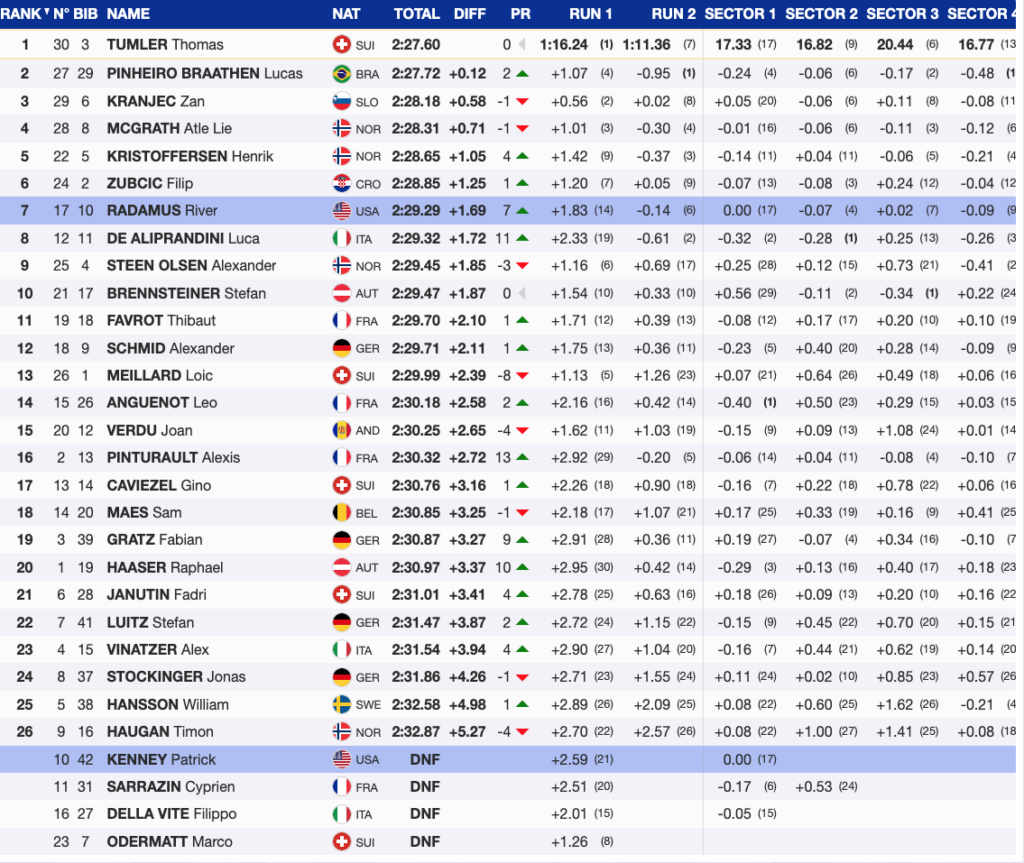 Related story: Thomas Tumler Leads as Patrick Kenney Qualifies in Thrilling Beaver Creek GS