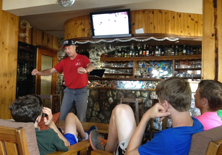 (U16 Coach Kraig Sourbeer reviews both his athletes’ and World Cup video in nightly sessions with his team.)