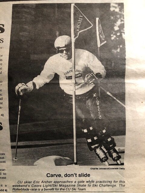 As inline skates became widely known, The University of Colorado hosted the first official inline skating slalom competition in the fall of 1991. The competition was sponsored by Coors Light and Paul Mitchell Cosmetics and televised on ESPN. It was a huge success, and the CU Ski Team called it a World Championship. Eric Archer, a CU Alumni and the Head Coach of the Ascend Ski Cross Team became the first champion of the inline roller slalom.