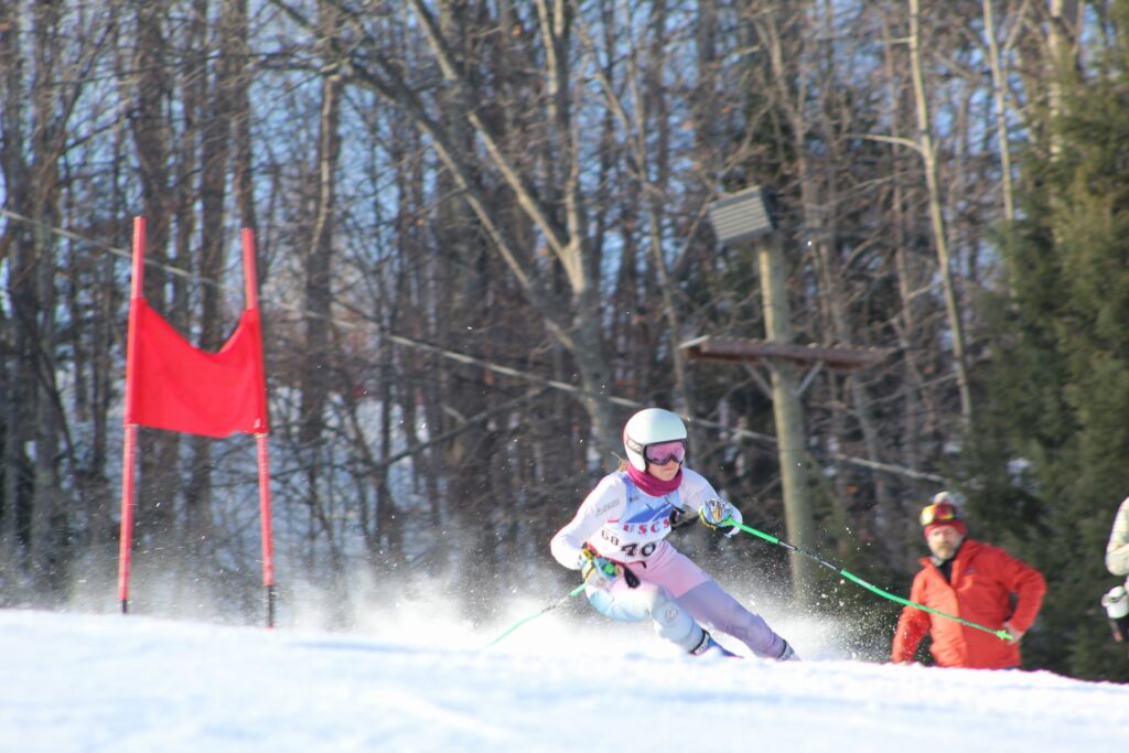 Colgate University led the women’s giant slalom, finishing first thanks to Carissa Dunlap (3), Maylia Lohman (4), Kate Goodrich (7), and Charlotte Morris (8). Hobart and William Smith placed second behind Aspen McAuley (1), while Syracuse University finished third.