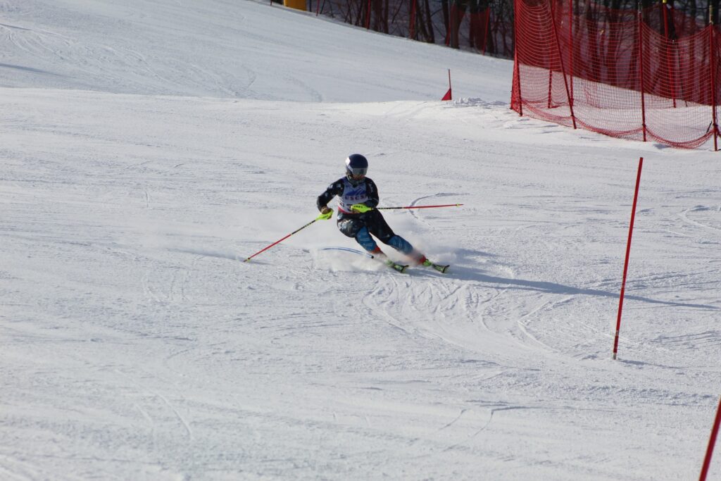 Hobart and William Smith captured the men’s giant slalom team victory behind Will Patton (1), Ethan Hine (2), and Zachary Wargo (6). Cornell University followed in second place with Antoine Marc (3), Moksh Patel (4), and Lukas Schemmel (10), while Syracuse University placed third.