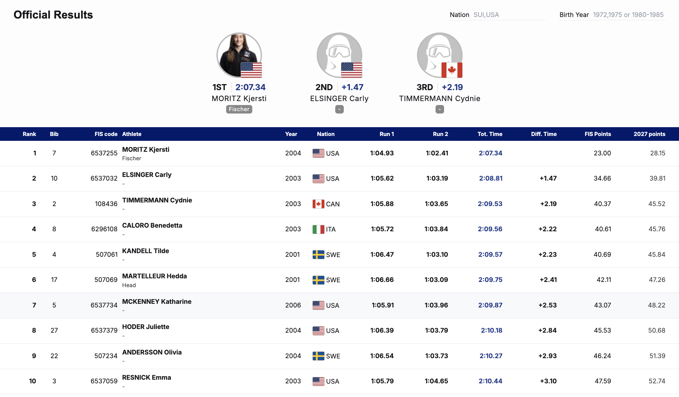 - Olivia Andersson from Plymouth State took another top 10 result with a ninth-place finish in the GS.