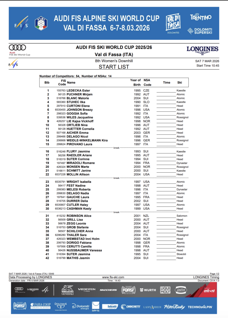 - • Bib 7 – 🇮🇹 Sofia Goggia (ITA, 1992, Atomic) — WCSL DH Rank: 6