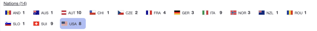 - • Bib 8 – 🇺🇸 Jacqueline Wiles (USA, 1992) – 12th in DH – 176 pts – Stifel U.S. Ski Team