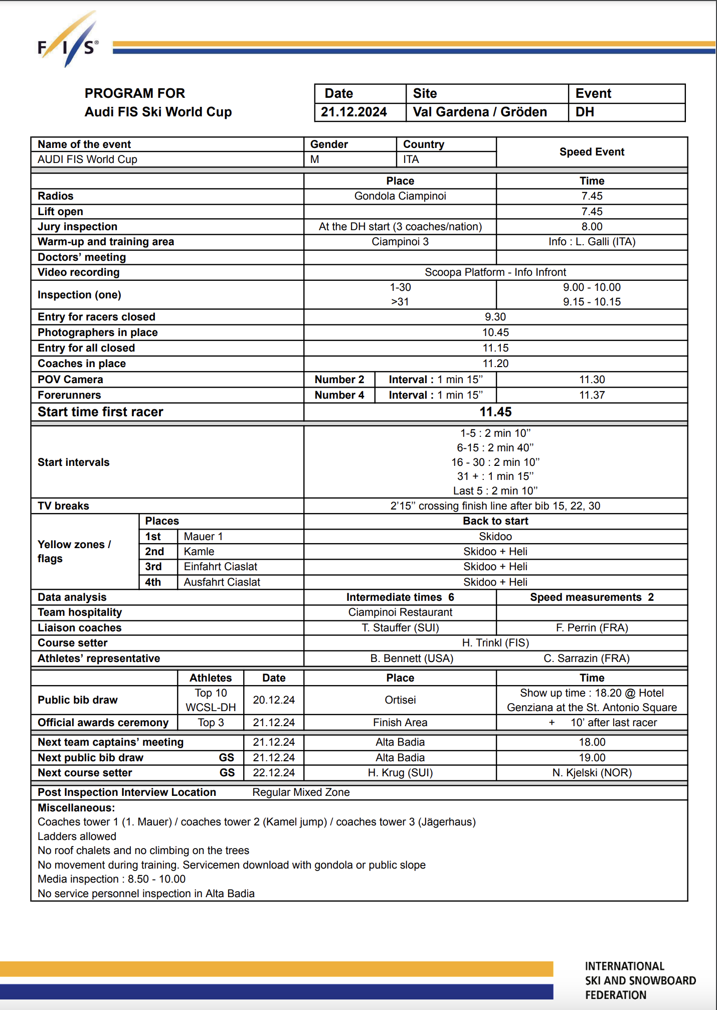 Beyond the strong performances at Beaver Creek, North America’s downhill roster features a mix of proven veterans and emerging talent eager to excel at Val Gardena/Gröden. Joining Bennett, Cochran-Siegle, and Morse on the World Cup Start List are World Championship bronze medalist, Cameron Alexander (CAN), Goldberg (USA), and Read (CAN). Independent racer Wiley Maple (USA) and Kyle Negomir (USA) also have the potential to impact this season.
