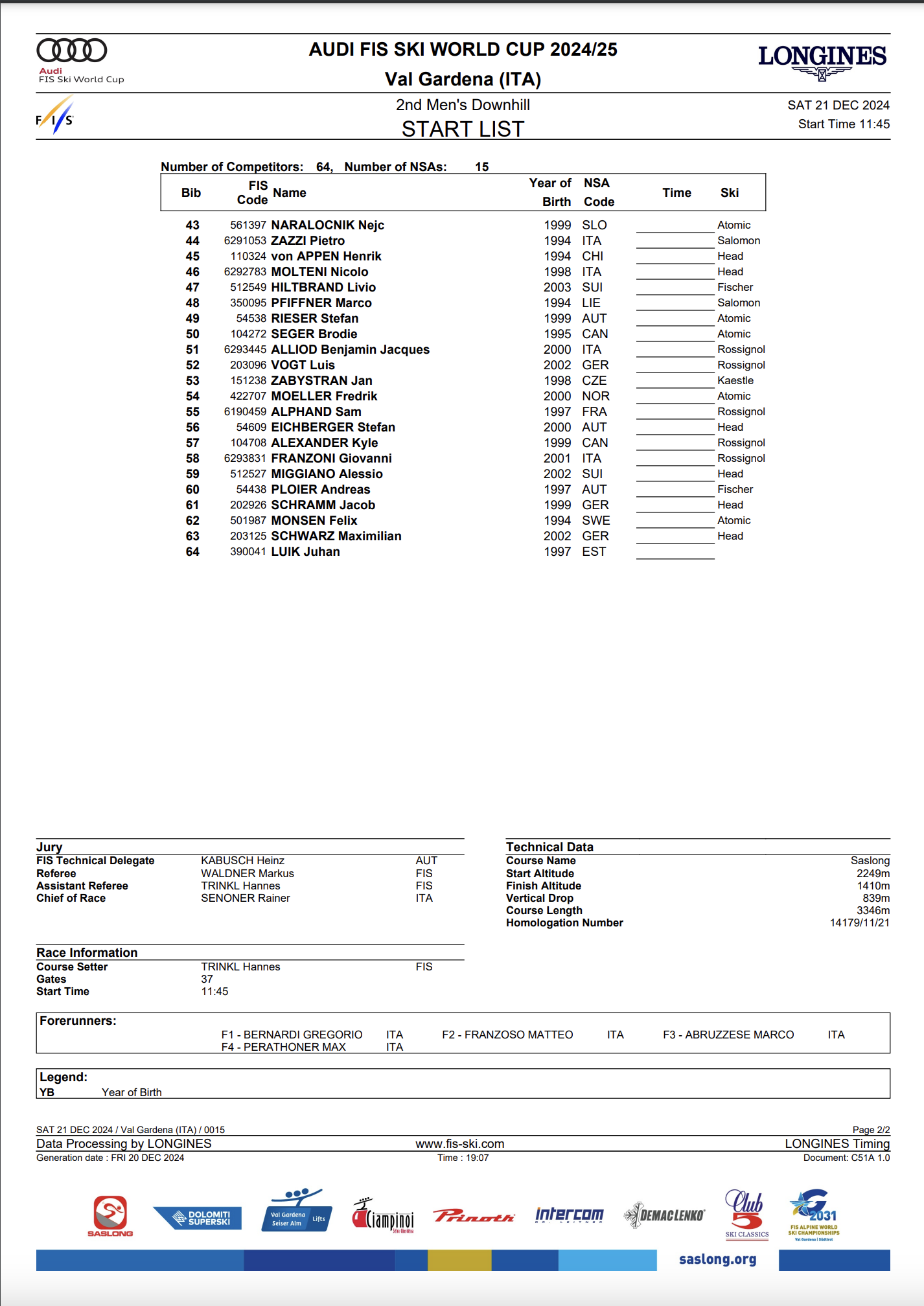 Last Season’s Saslong Downhills