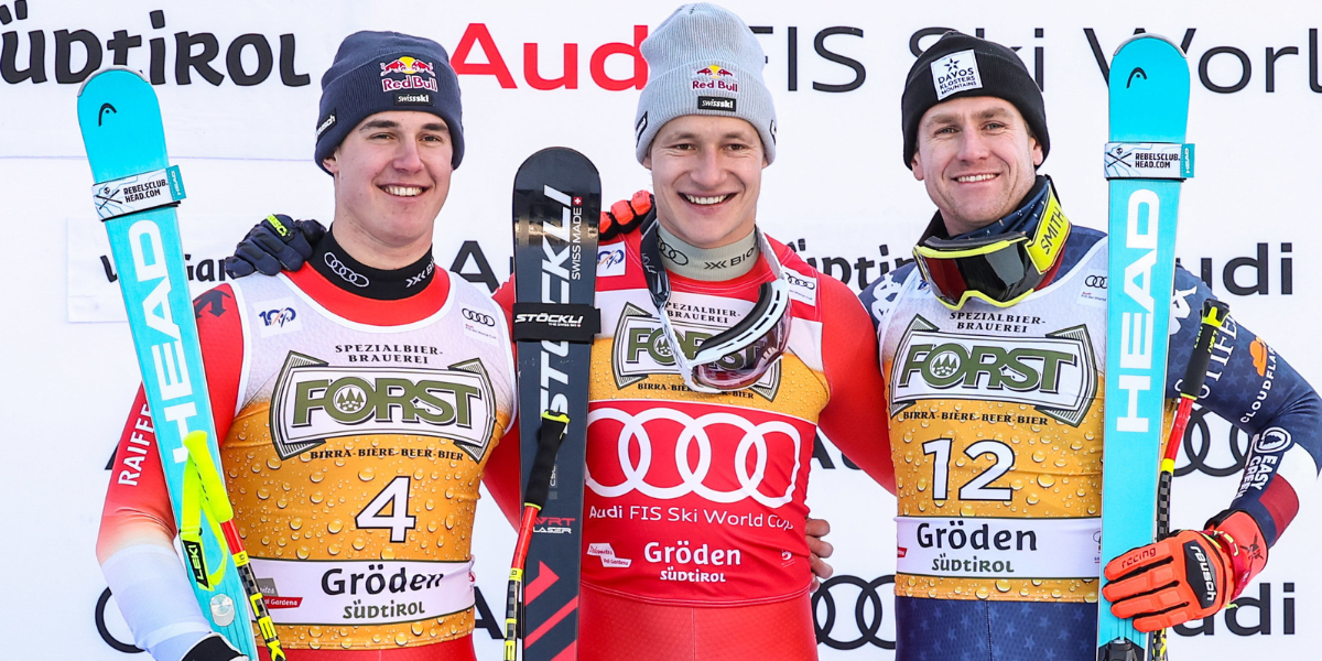 Von Allmen, Odermatt, Cochran-Siegle / Val Gardena Podium 2024 / GEPA pictures