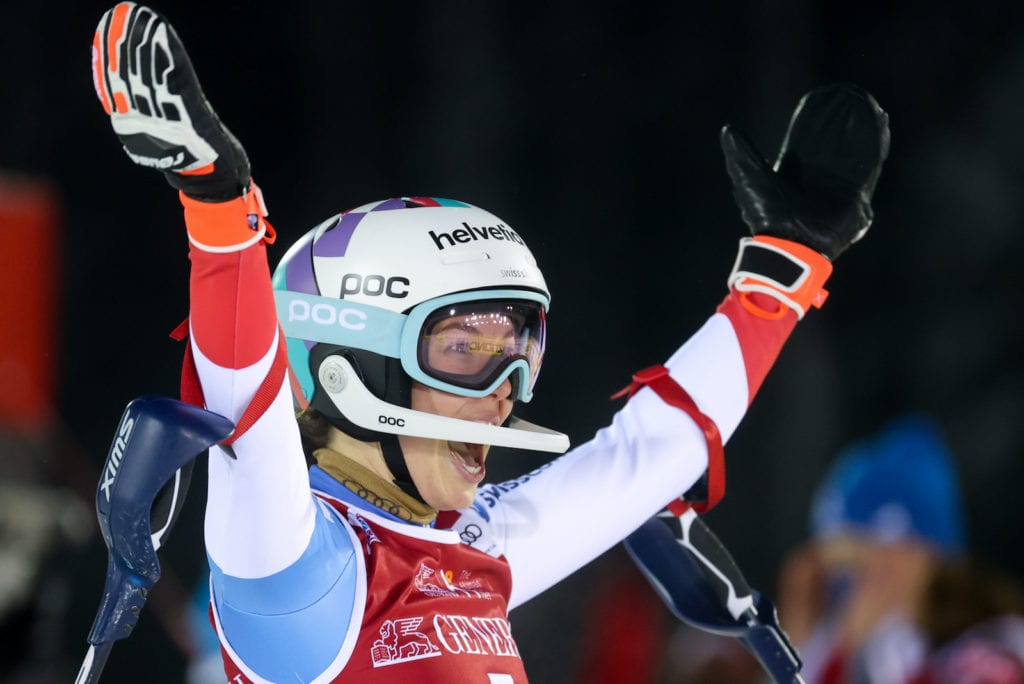 Her Swiss teammate, Wendy Holdener, was 0.79 behind in fourth. Holdener has a record 24 top-three results in slalom without winning a race in the discipline.
