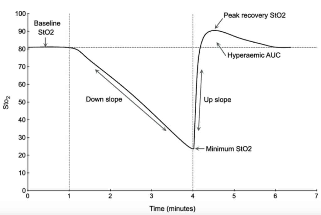 - Initial rapid recovery: Immediately after exercise, SmO₂ rises quickly as oxygen consumption drops but blood flow remains elevated from vasodilation.