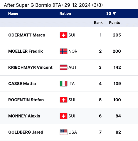 - 3rd: Marco Odermatt (SUI) – Odermatt continued his consistent form with another podium finish, keeping him atop the standings.