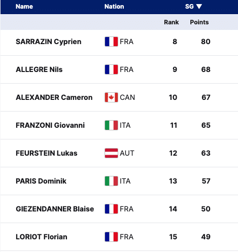 This season has highlighted the international competitiveness of men’s super-G. Among the top 15 in the standings, seven countries are represented, with France, Switzerland, and Italy leading the charge. Despite Sarrazin’s absence, France still has three skiers in contention, showcasing the French depth of talent across the field.
