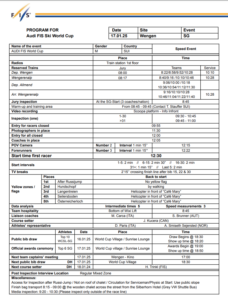 The Wengen Super-G marks the fourth of eight super-G races this season. With only Wengen and Kitzbühel left before the February World Championships in Saalbach, Austria, this race is critical for athletes hoping to secure their spots on their countries’ rosters.