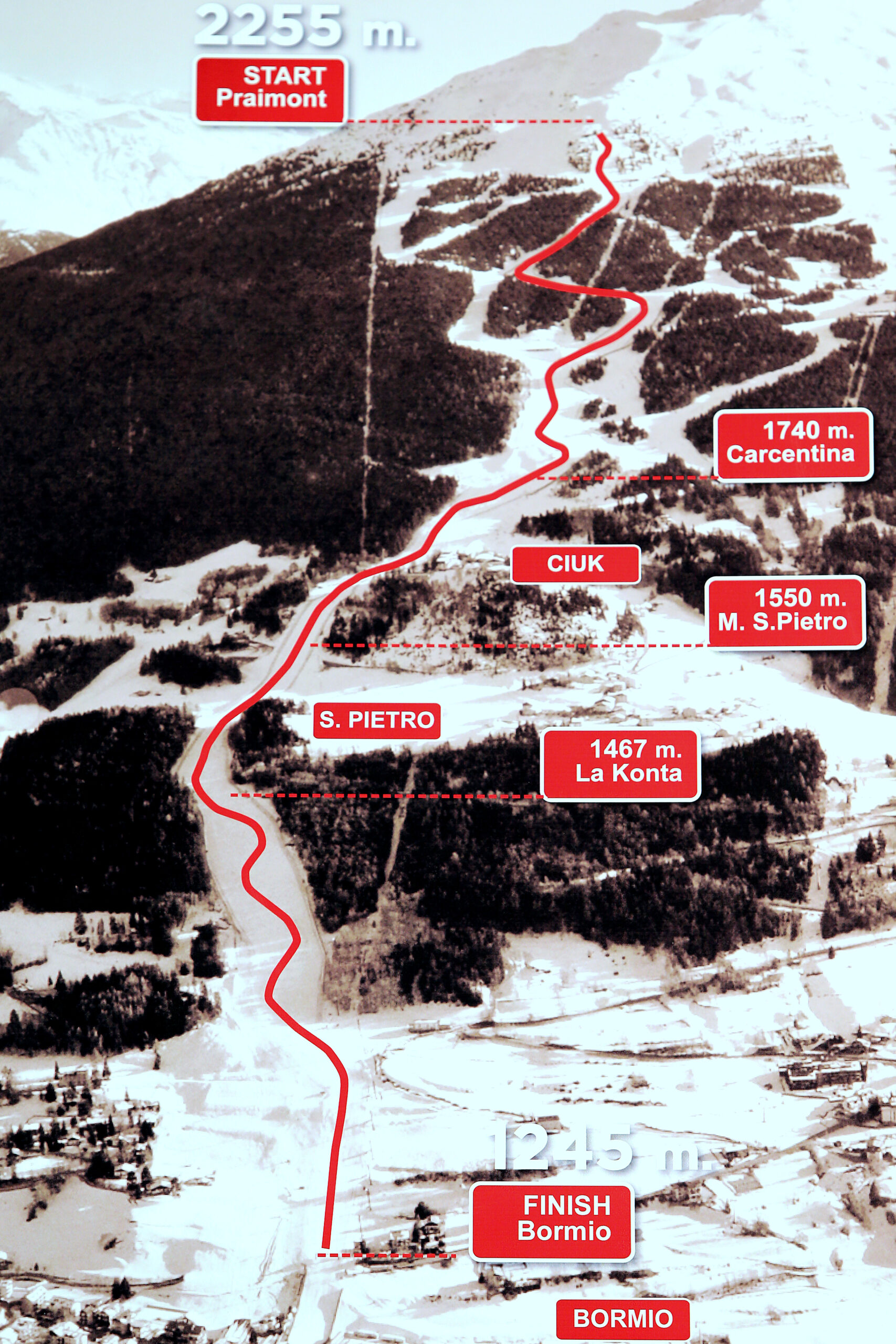 It is one of the most physically demanding courses on the circuit. It is almost 3,230 meters long, has a 986-meter vertical drop, and has a maximum gradient of 63%.