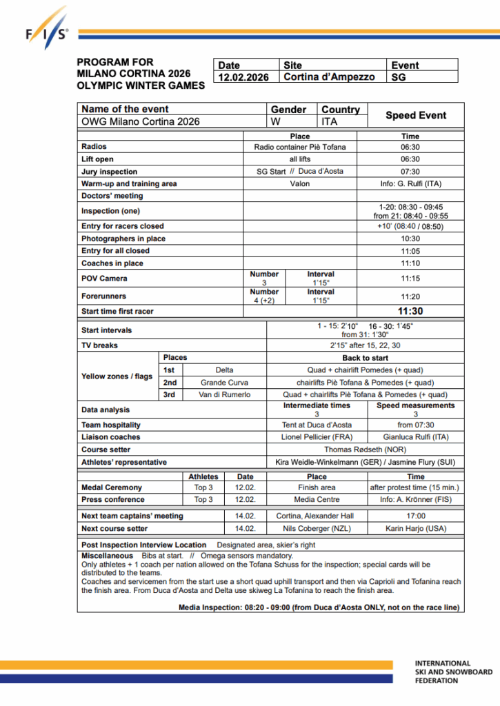 The race is scheduled for Thursday, Feb. 12, 2026, in Cortina d’Ampezzo, where the course demands power, focus, and total commitment from top to bottom.