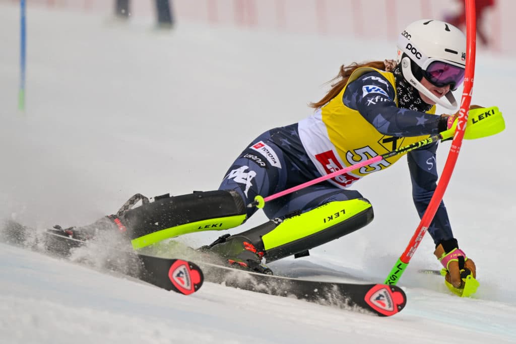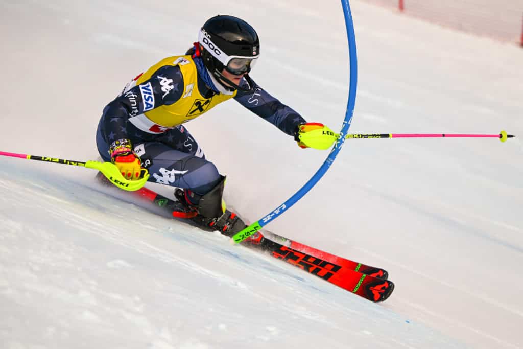 Stifel US Alpine Team member and Burke Mountain Academy racer Zoe Zimmermann was happy to be competing in the sunshine in the afternoon. “It was a really fun course, but I felt I could have gone harder than I thought I could from the inspection,” she said after the second run. Zimmermann placed 11th (+2.39). After Junior Worlds in St. Anton, Zimmermann and Sunshine will head for Špindlerův Mlýn in the Czech Republic for the World Cup slalom races next week.