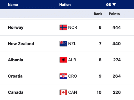 Nations Cup GS Standings