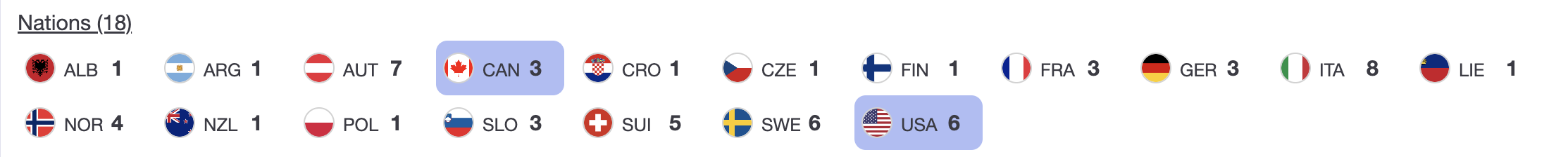 - Austria and Norway have each secured one third-place finish.