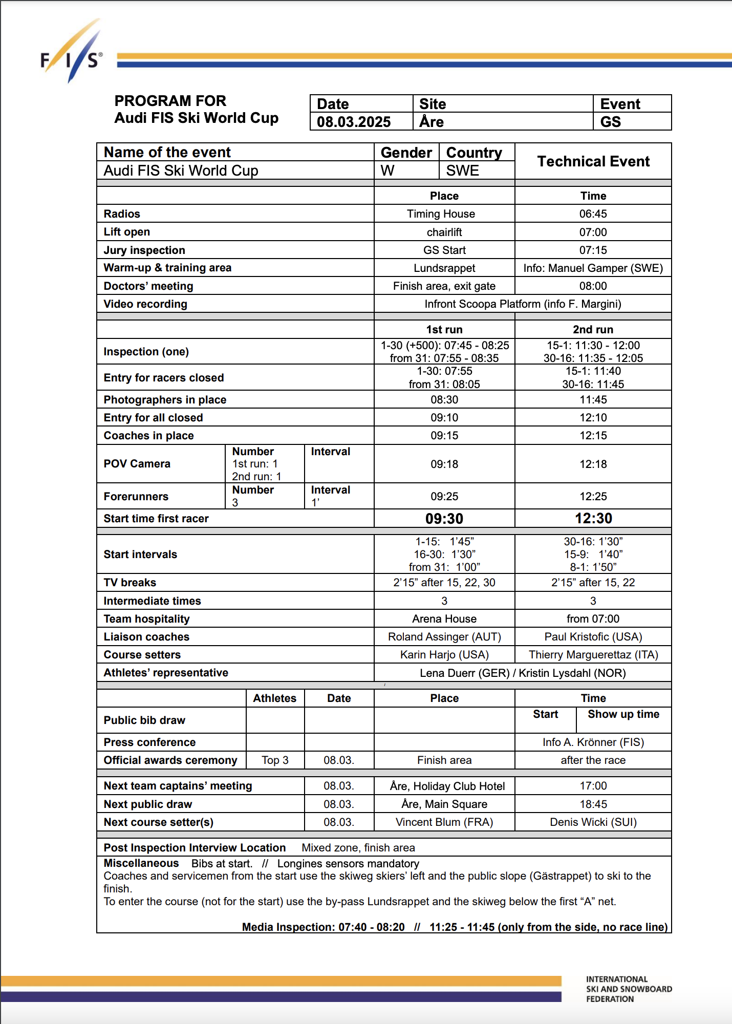 Beyond the fight for the top spots, many racers are racing for one last chance to qualify for the World Cup Finals in Sun Valley, Idaho. Only the top 25 in the season standings earn a spot in the final GS of the season, making Åre a do-or-die race for those hovering around the cutoff. Expect aggressive skiing from athletes trying to break into or secure their place in the top 25.