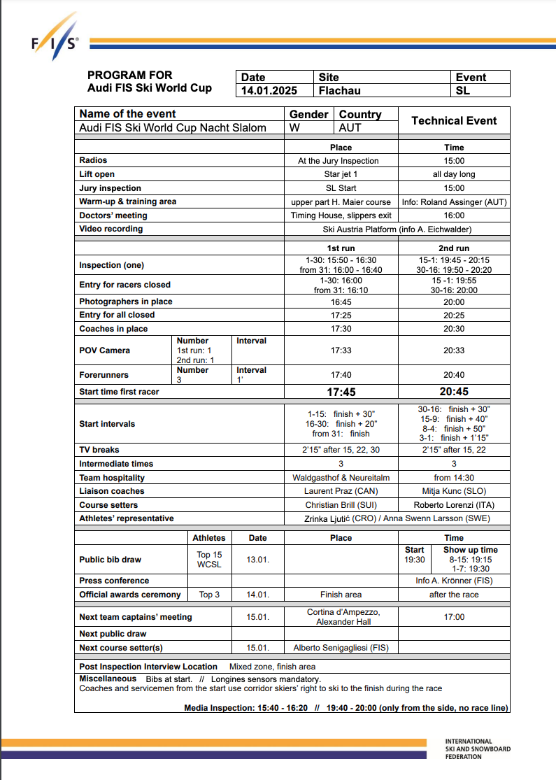 Flachau marks a pivotal moment in the slalom season as the athletes transition into the second half of the year. With five races already completed and five remaining, the race for the slalom crystal globe is heating up. Flachau offers skiers a chance to establish momentum as the season builds toward its climax, including the World Championships in Saalbach and the final races in March.