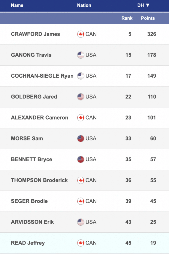 More on the North American front, Talented Canadian Jefferey Read and Stifel US Ski Team’s Kyle Negomir have contributed to the North American downhill point total.