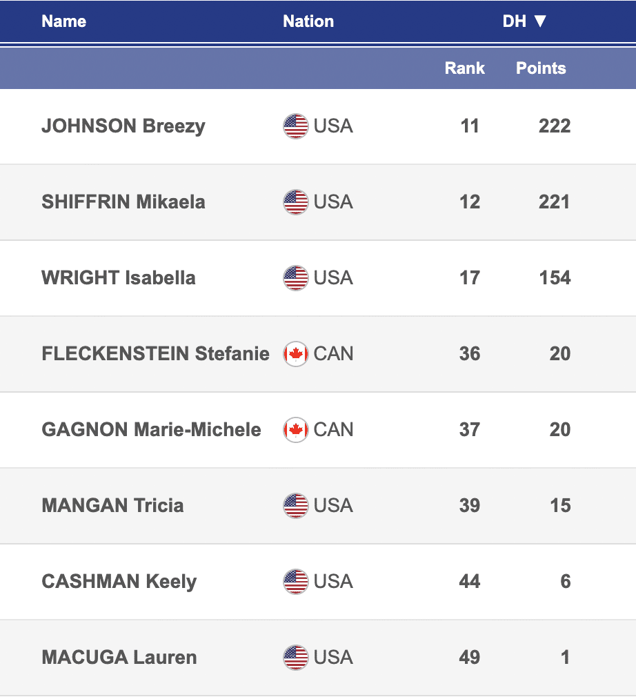 See how women are ranking in the 2024 World Cup downhill standings, and take a glance at how North Americans did last season.