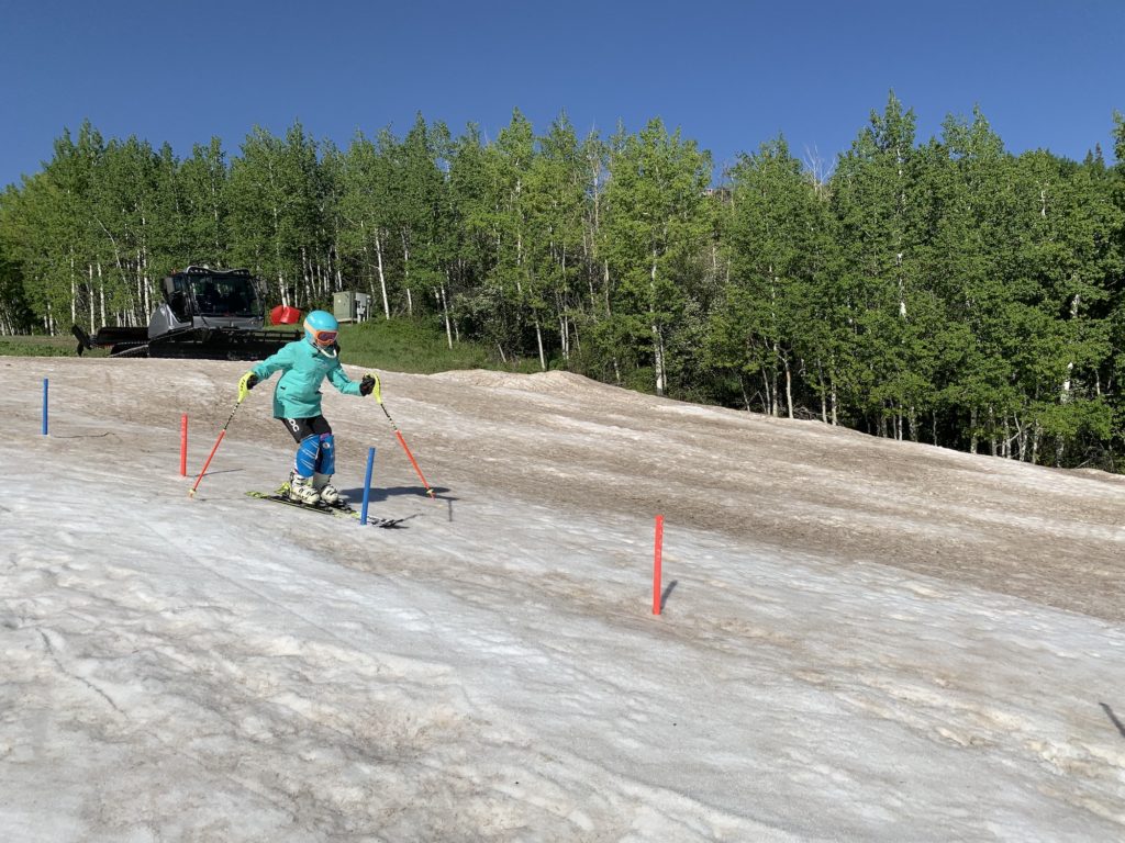 On this sunny Saturday, coaches Eric Colon, Jack Kirby and Brad Bridges were busy slipping and salting the track while coaching kids, including Caleah Lutz-Sladdin, a rising Aspen Middle School seventh-grader.