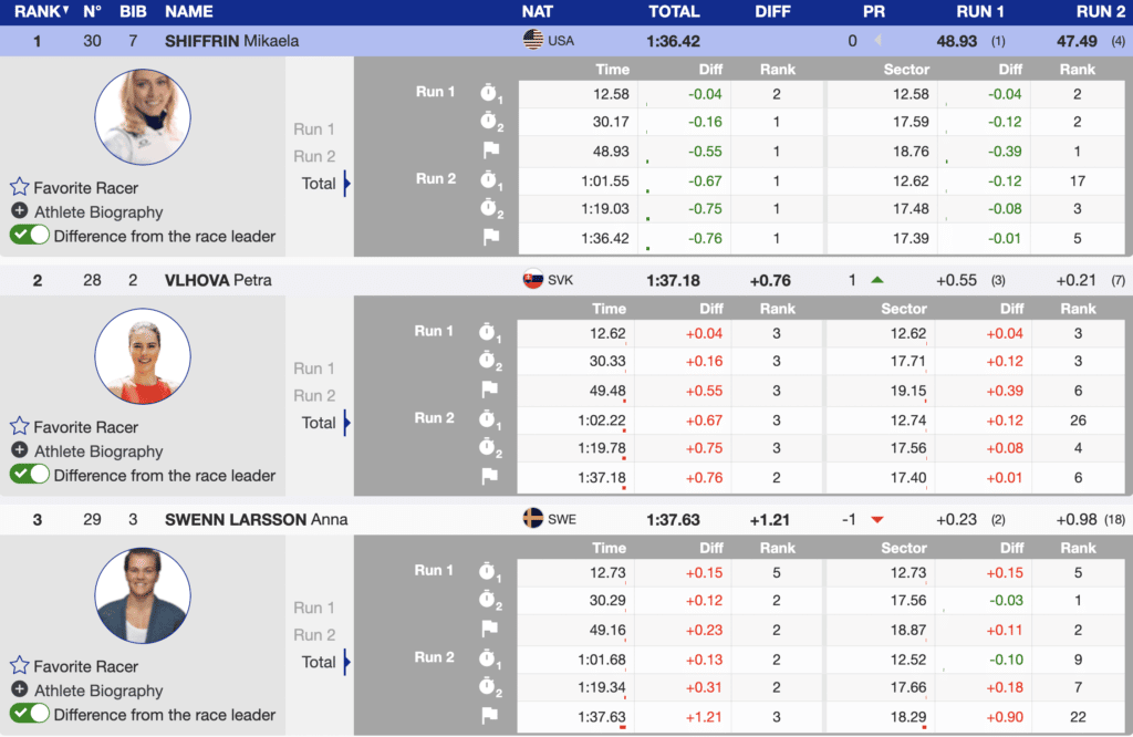 “I think it was two nearly perfect runs. I couldn’t do it better, Shiffrin reflected on her day. “If I had to go up and do it again, I couldn’t do it better. So, I’m really happy with my skiing.”