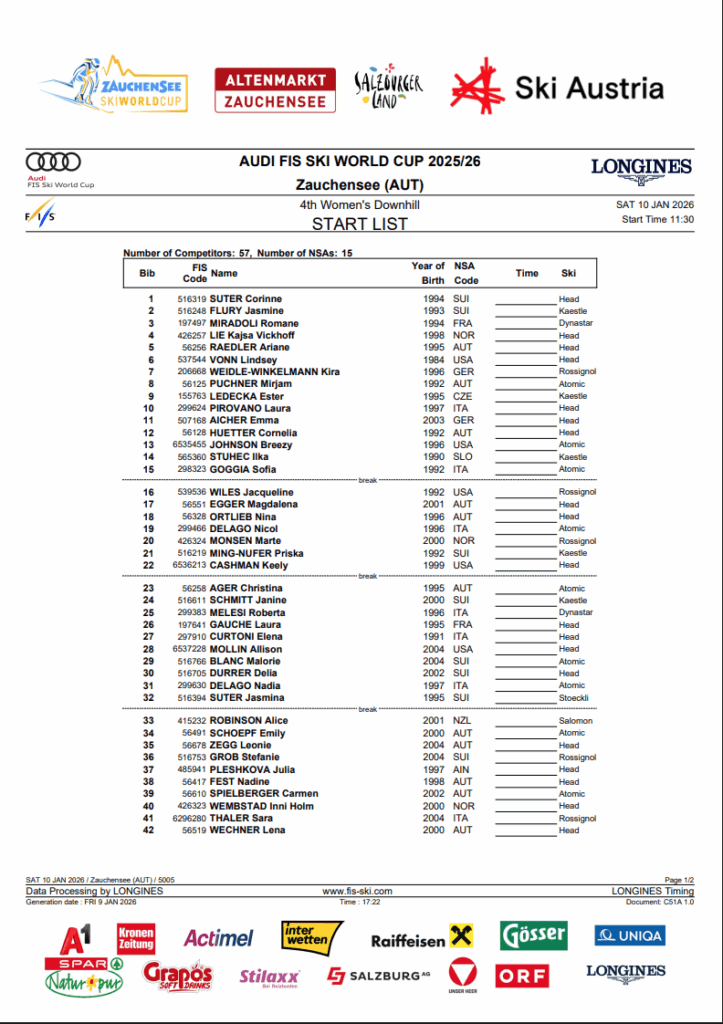 Saturday’s race lands at a pivotal moment in an Olympic season. Zauchensee is the fourth of six downhill races before the Olympics and the fourth of nine downhill races on the 2025–26 World Cup calendar. For established stars, the focus is on sharpening form and building momentum. For most others, the window to earn Olympic selection from their national federations is narrowing quickly.