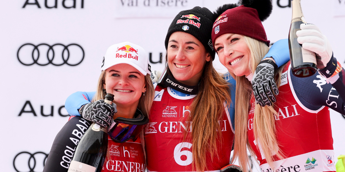 | Val d’Isère | 🇮🇹 Sofia Goggia | 🇳🇿 Alice Robinson | 🇺🇸 Lindsey Vonn |