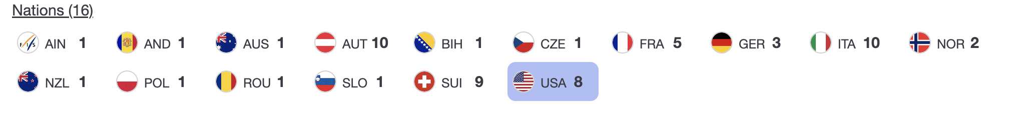 - 🇳🇿 Bib 10 — Alice Robinson (2001) — 180 points — series leader