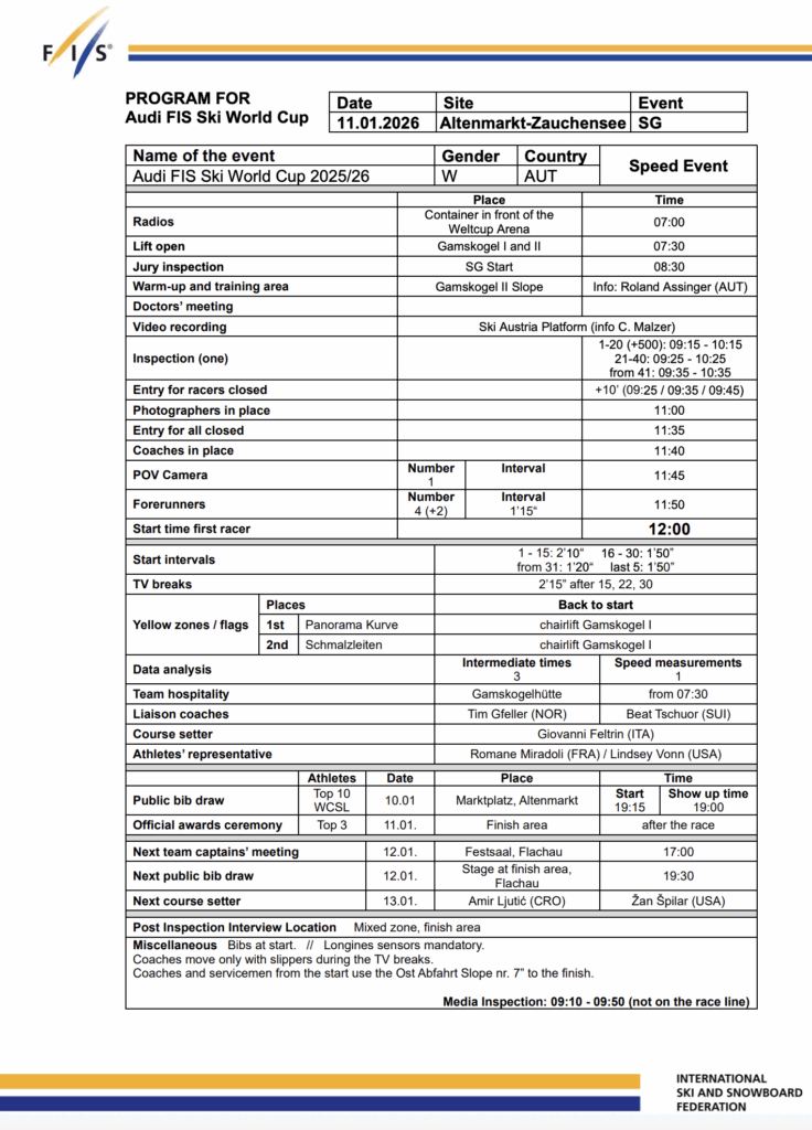 Time is tightening for athletes on the bubble for Olympic selection, while established contenders chase seeding, momentum, and confidence. Super-G rewards speed and exposes hesitation, and Zauchensee amplifies both. Commitment is not a choice here — it is a requirement.